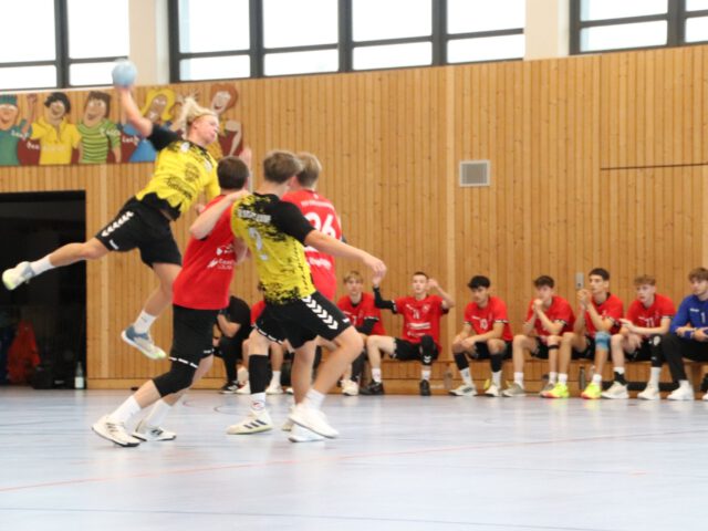• Ein Blick vor dem Spiel auf die Auswechselbänke beider Teams ließ nicht Gutes erahnen: die 77er  haben gefühlt mehr Spieler auf Krücken stehen als auf dem Spielberichtsbogen und traten mit drei Auswechselspielern beim HBC Nürnberg an, die ihrerseits sieben (!) Spieler auf die Auswechselbank setzten konnten. So war vor dem Spiel die Frage, selbst wenn die 77er individuell dagegenhalten könnten, würden die Kräfte bis zum Schluss reichen oder müsste man wie im ersten Saisonspiel am Ende dem Kräfteverschleiß Tribut zollen und als Verlierer vom Platz gehen? Wer die A-Jugend des TV 1877 Lauf kennt, weiß: Aufgeben gehört nicht zu ihrem Repertoire. Und so zeigte die Mannschaft am Samstagabend in Nürnberg eine Leistung, auf die alle stolz sein dürfen. Von Beginn an war Lauf hellwach, mutig und konzentriert. In der Abwehr wurde beherzt zugepackt, vorne lief der Ball flüssig. Immer wieder fanden die Jungs den Weg zum Tor, und nach 20 Minuten lag der TV 77 beim Stand von 7:12 mit fünf Treffern vorne. Zur Pause stand ein verdientes 16:12 für Lauf auf der Anzeigetafel. Lauf spielte weiterhin stark und in Minute 40 erzielte Sebastian mit seinem siebten Treffer das Tor zur erneuten 5-Tore-Führung (18:23). Nun drehte Nürnberg allerdings auf. Mit frischen Kräften von der vollen Bank kamen sie Tor um Tor heran. Vier Minuten vor Schluss gingen die Gastgeber das erste Mal im Spiel kurz in Führung. Doch diesmal ließ sich Lauf nicht mehr den Schneid abkaufen. Wo im Spiel vor zwei Wochen die Kräfte schwanden und das Spiel noch verloren ging, stemmte sich das Team diesmal mit allem, was noch drin war, dagegen – und Grix erzielte 30 Sekunden vor dem Schluss per Strafwurf den Ausgleich zum Endstand von 27:27-Unentschieden. Es spielten: Moritz Reichl (TW), Nils Barthmann (TW), Bastian Elsner (8), Jonah Perrey, Grigorios Xanthakis (7/2), Finlay Rimmer (3), Theo Heindl, Simon Denzinger (1), Amir Saif (1), Sebastian Schwarz (7)